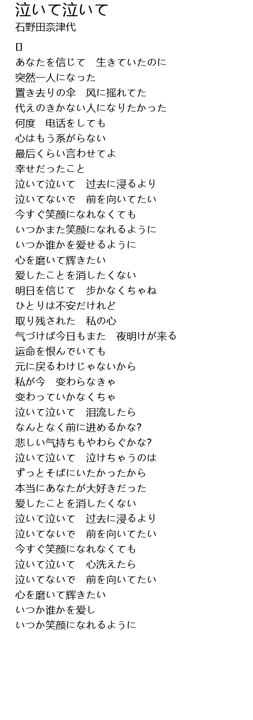 泣いて泣いて 泪流したら |