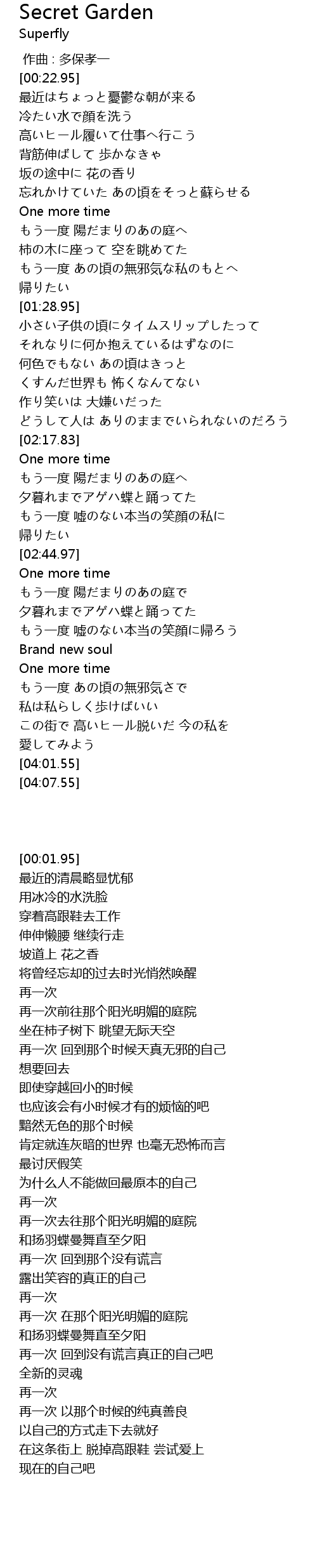 | [02:20.91] | もう一度 陽だまりのあの庭へ |