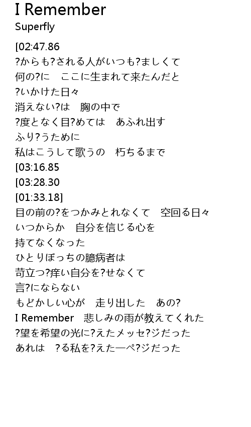 | [00:17.00][02:47.86][03:54.56] | SuperflyI Remember |