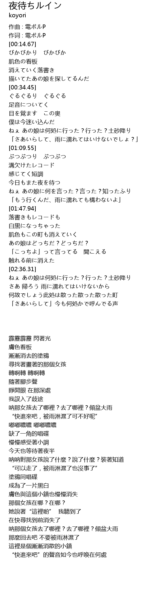 | [00:10.45] | 作词 : 電ポルP |