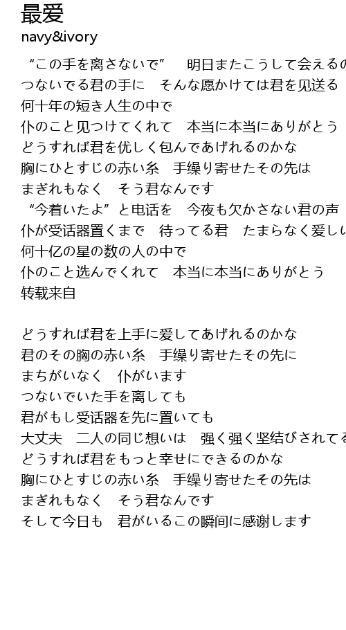 | 大丈夫 二人の同じ想いは 强く强く坚结びされてるから | |