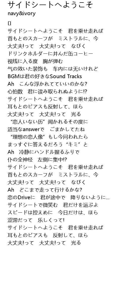 | サイドシートで微笑む 君だけを运ぶよ | |