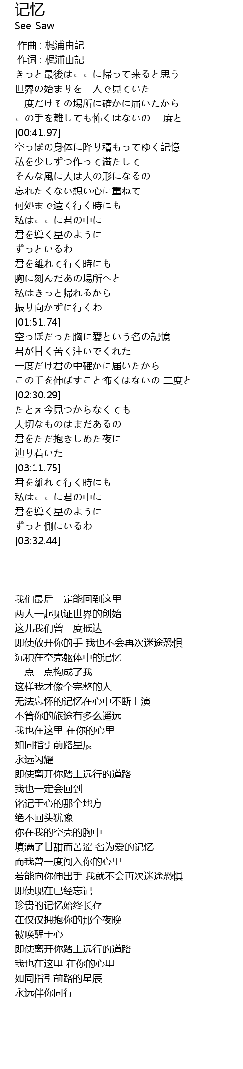 | [03:00.78] | 珍贵的记忆始终长存 |