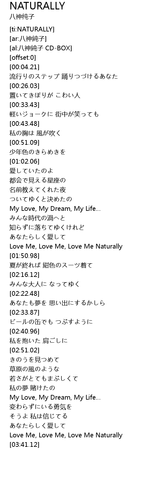 | [03:31.17] | Love Me, Love Me, Love Me Naturally |