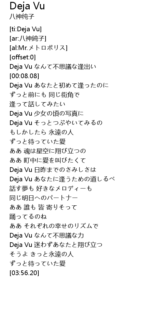 | [03:16.42] | Deja Vu なんて不思議な力 |