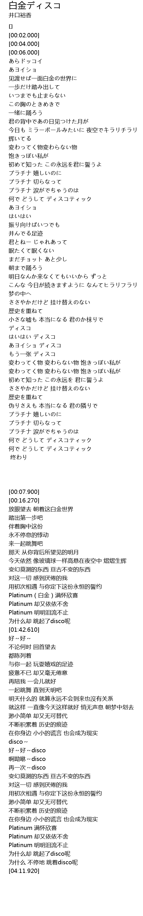 | [04:02.840] | 为什么却 跳起了disco呢 |