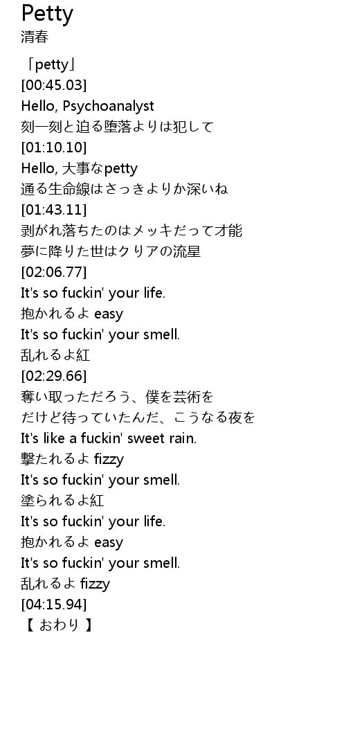 | [00:05.03] | 「petty」 |