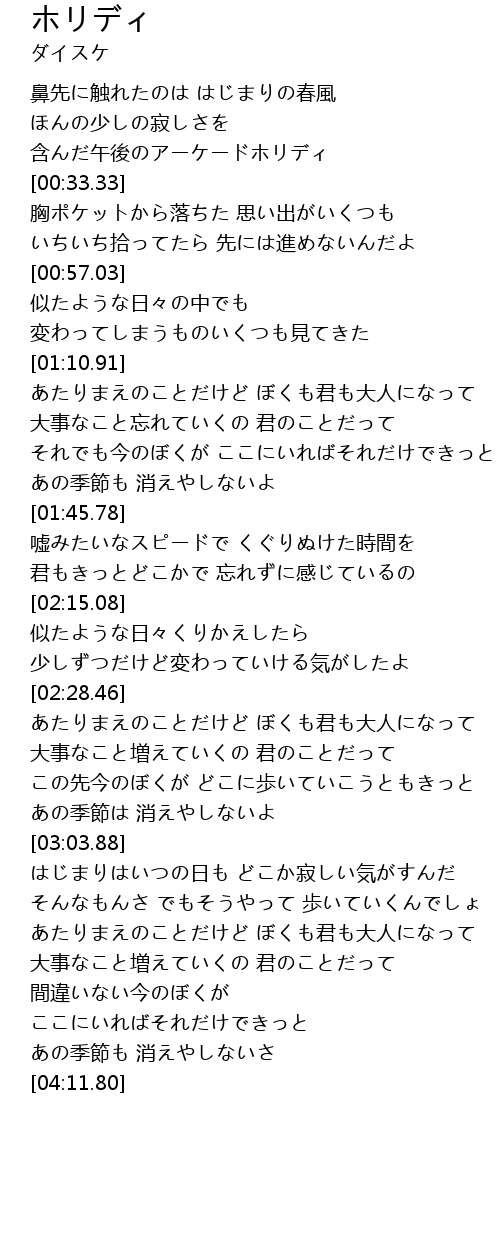 | [03:38.73] | あたりまえのことだけど ぼくも君も大人になって |