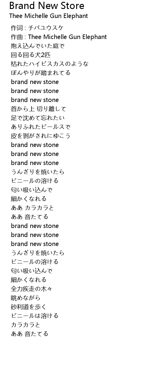 | [00:01.000] | 作曲 : Thee Michelle Gun Elephant |