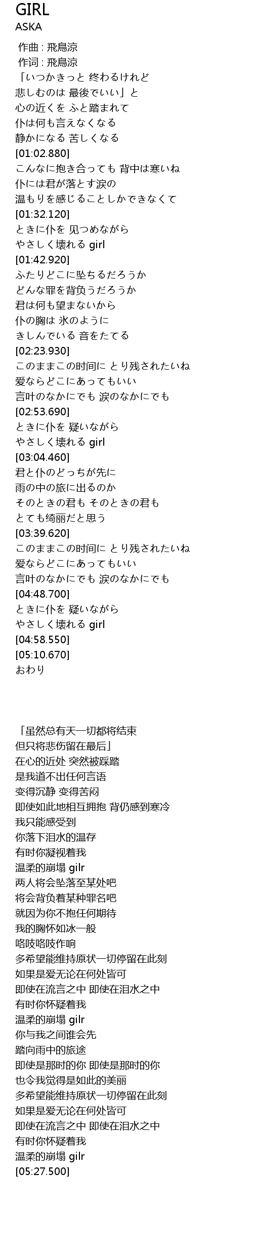 作词 : 飛鳥涼 |