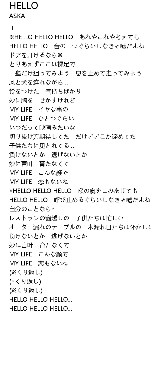 | ※HELLO HELLO HELLO あれやこれや考えても | |
