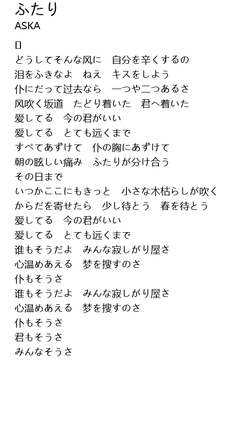 | 风吹く坂道 たどり着いた 君へ着いた | |