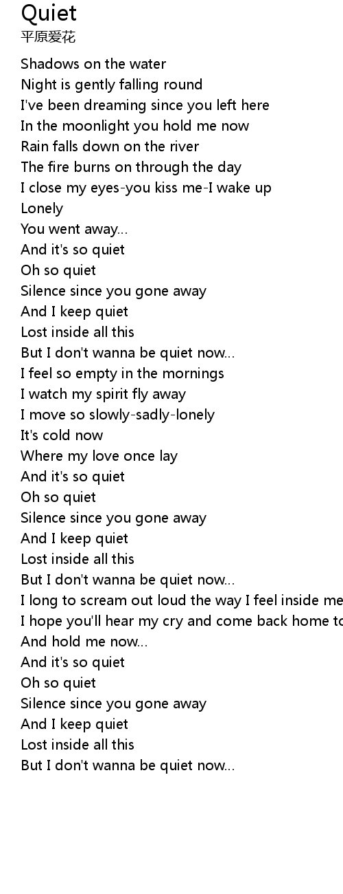 | But I don' t wanna be quiet now |