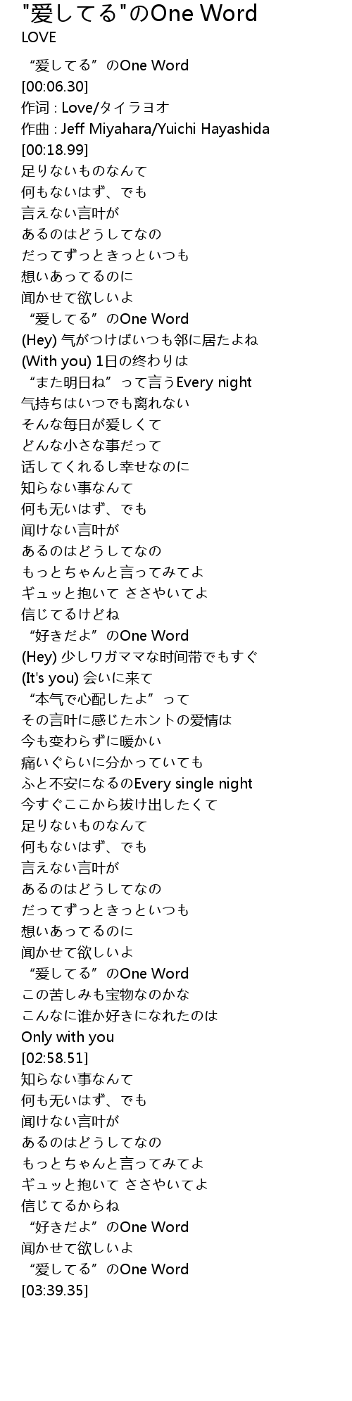 | [00:11.15] | 作词∶Love/タイラヨオ |