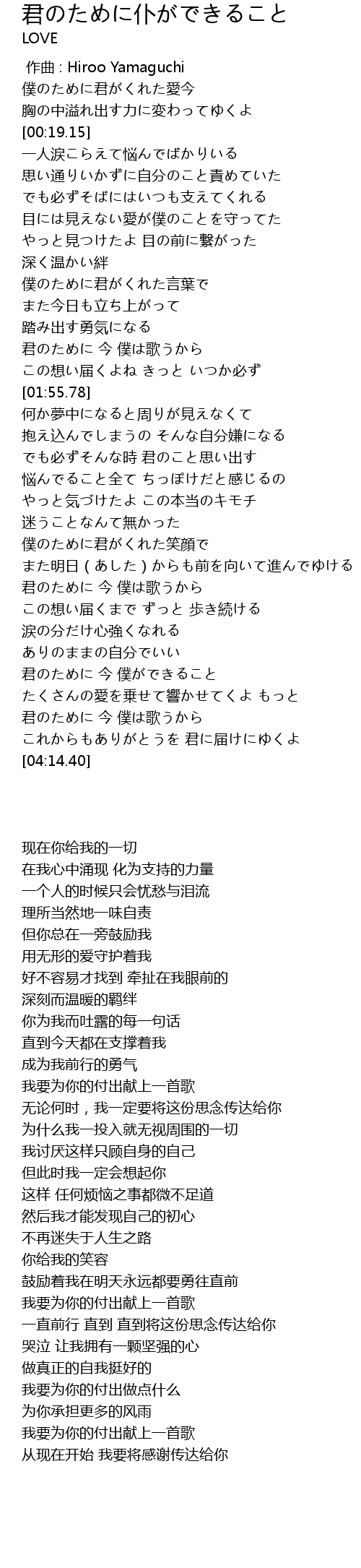 | [03:02.98] | 君のために 今 僕は歌うから |