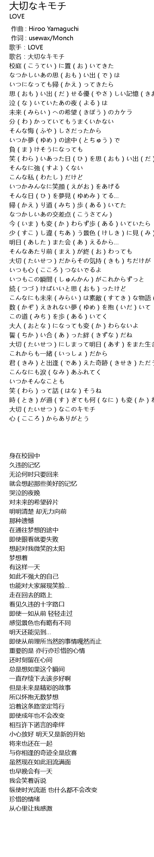 | [04:03.372] | 大切(たいせつ)なこのキモチ |