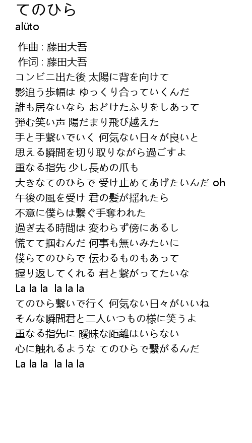 | [02:44.61] | てのひら繋いで行く 何気ない日々がいいね |