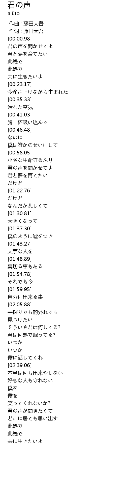 | [00:00.32] | 作词 : 藤田大吾 |