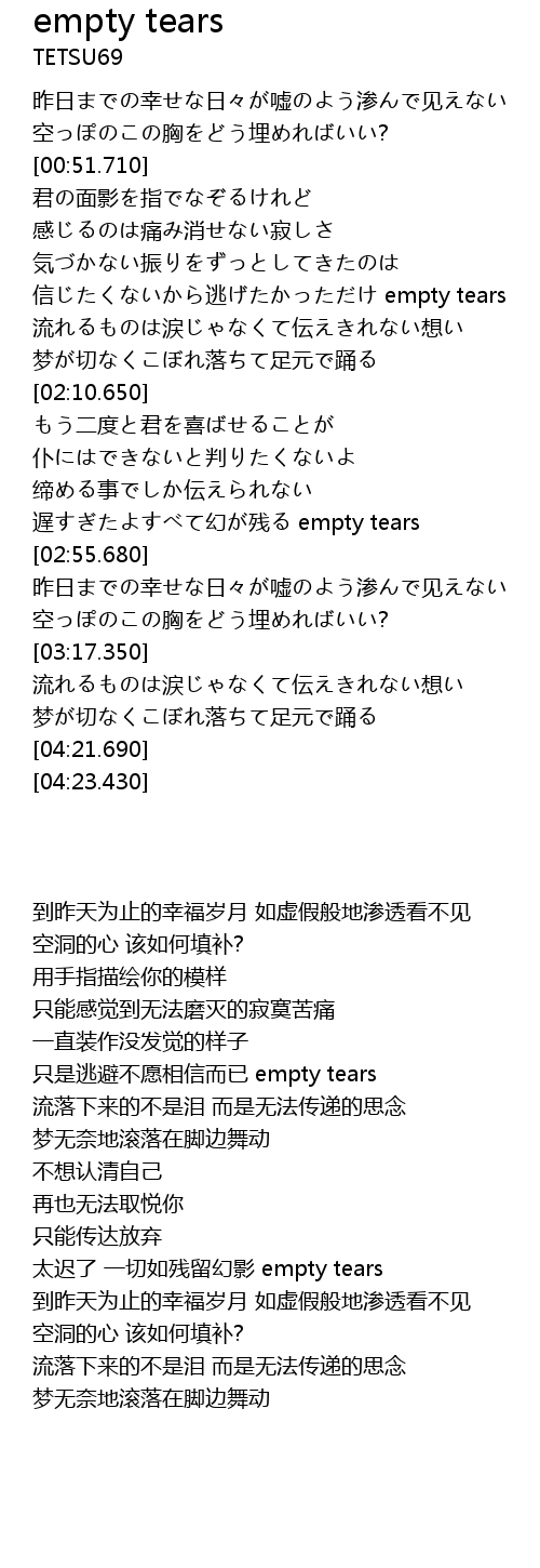 | [02:44.490] | 太迟了 一切如残留幻影 empty tears |