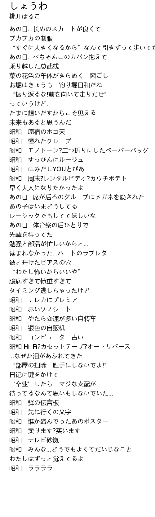| [04:21.38] | 昭和 みんな…どうでもよくてだいじなこと |