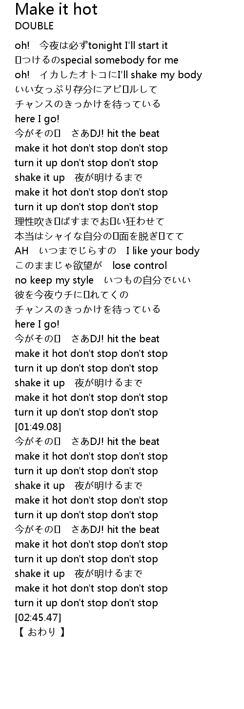 | [00:44.07] | make it hot don' t stop don' t stop |