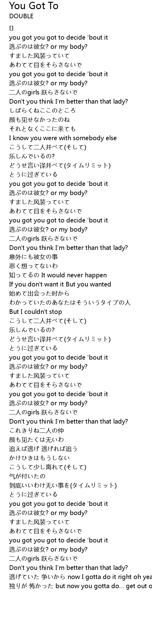 | 歌曲 | You Got To |