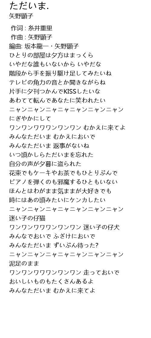 | [00:01.000] | 作曲 : 矢野顕子 |