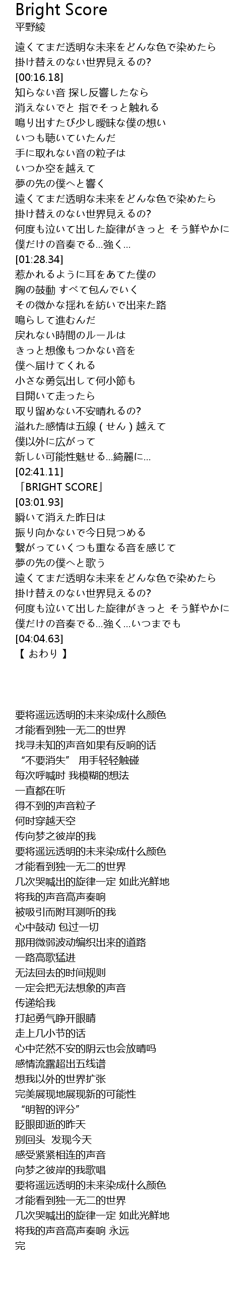 | [02:44.93] | 「BRIGHT SCORE」 |