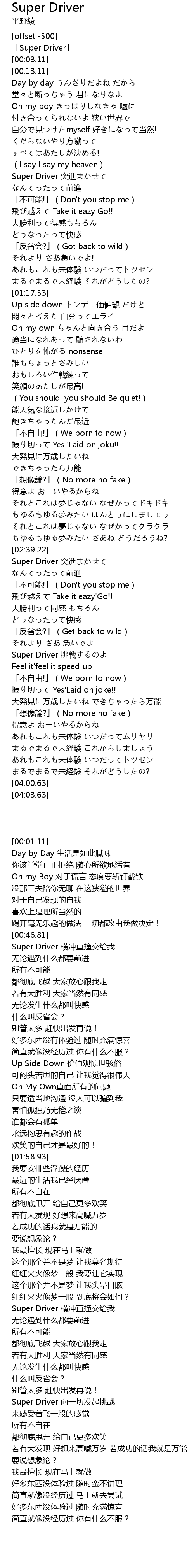 | [00:01.11] | 「Super Driver」 |