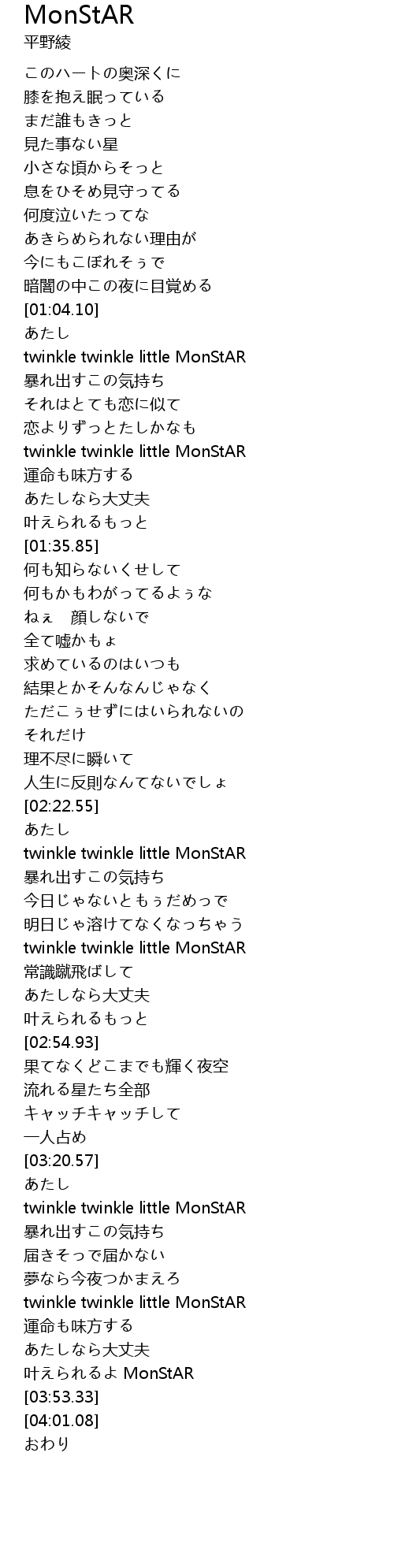 | [03:34.70] | twinkle twinkle little MonStAR |