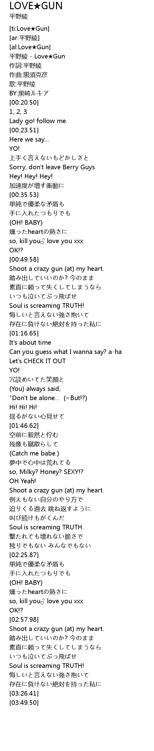 | [00:49.72] | Shoot a crazy gun (at) my heart. |