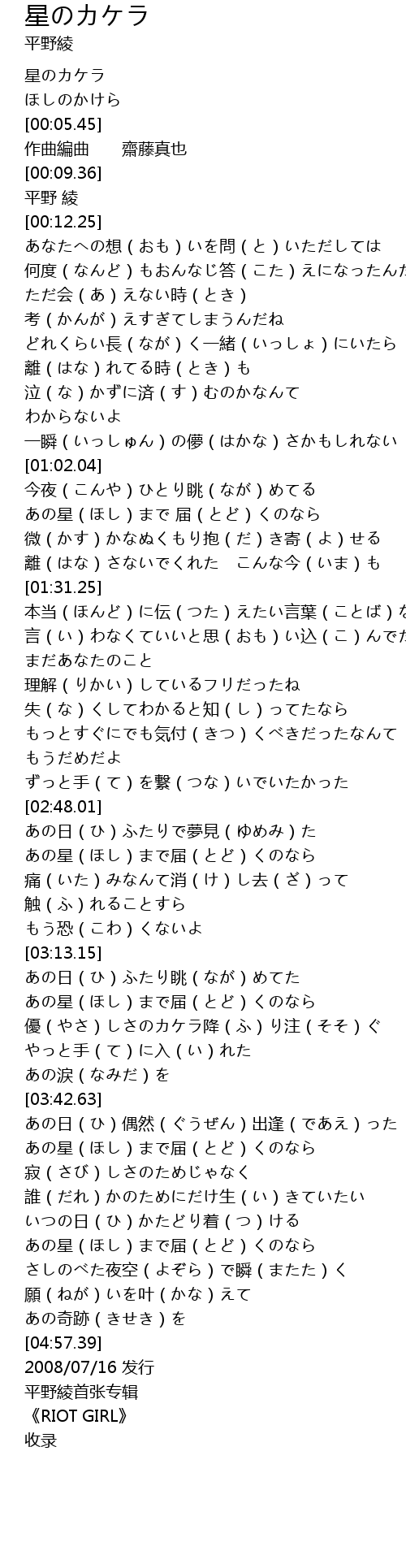 | [00:03.41] | ほしのかけら |