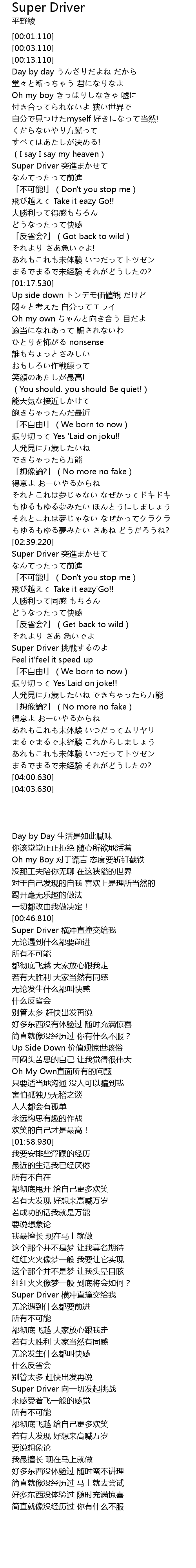 | [03:22.600] | Super Driver tiāo zhàn |