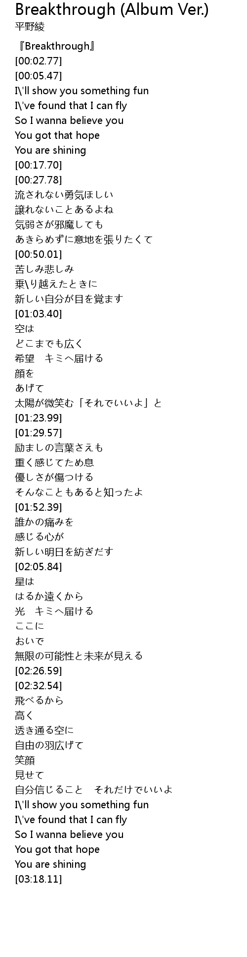| [00:00.30] | 『Breakthrough』 |