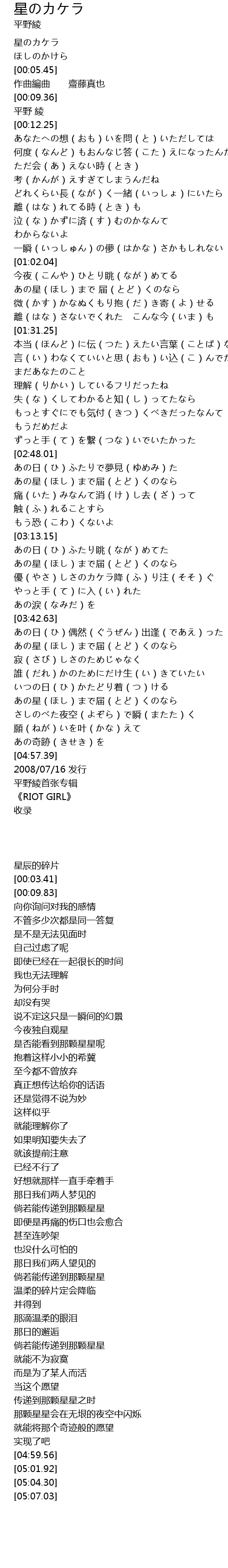 | [00:03.41] | ほしのかけら |