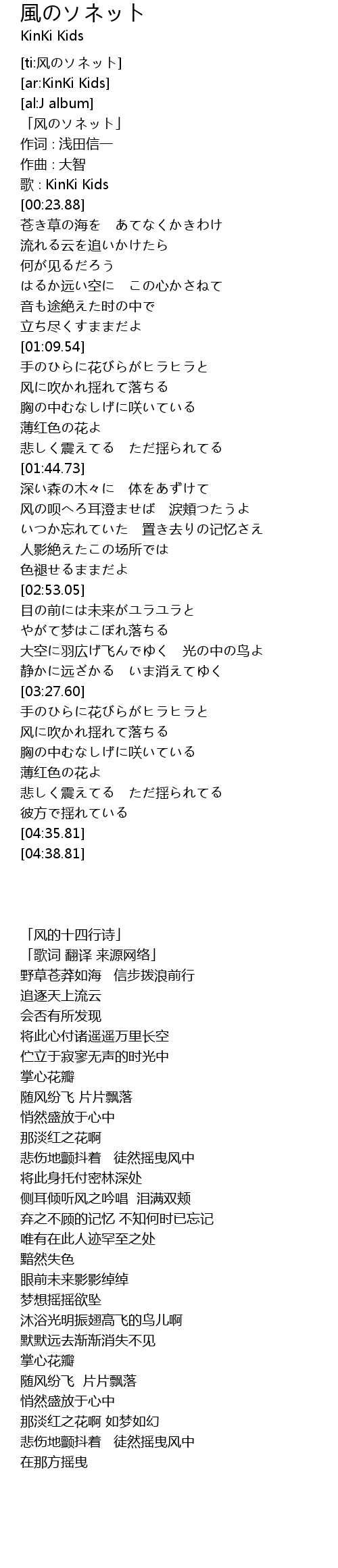 | [ti:风のソネット] | |