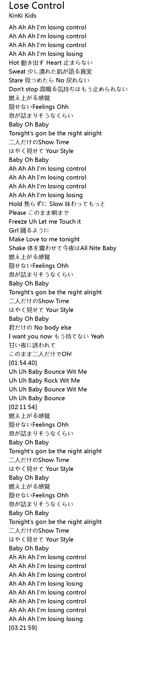 | [03:04.36] | Ah Ah Ah I' m losing control |
