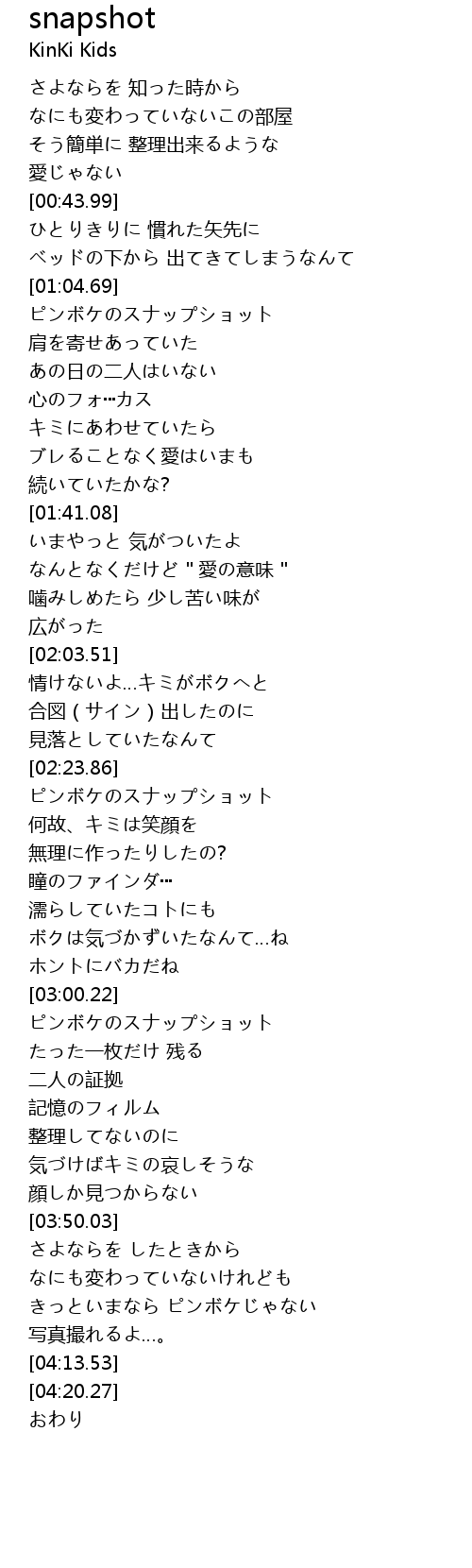 | [04:03.05] | きっといまなら ピンボケじゃない |