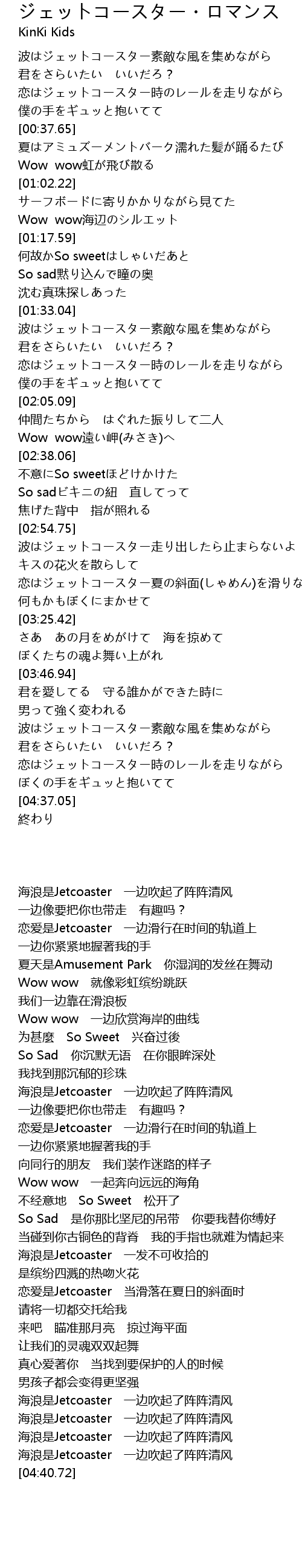 | [04:18.45] | 海浪是Jetcoaster 一边吹起了阵阵清风 |