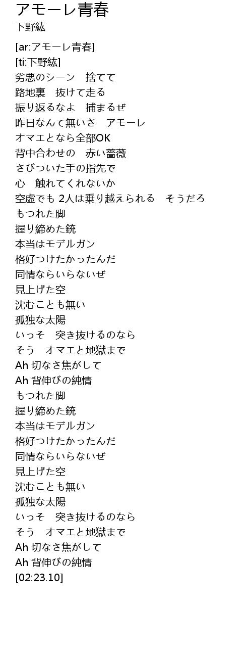 | [00:29.09] | 昨日なんて無いさ アモーレ |