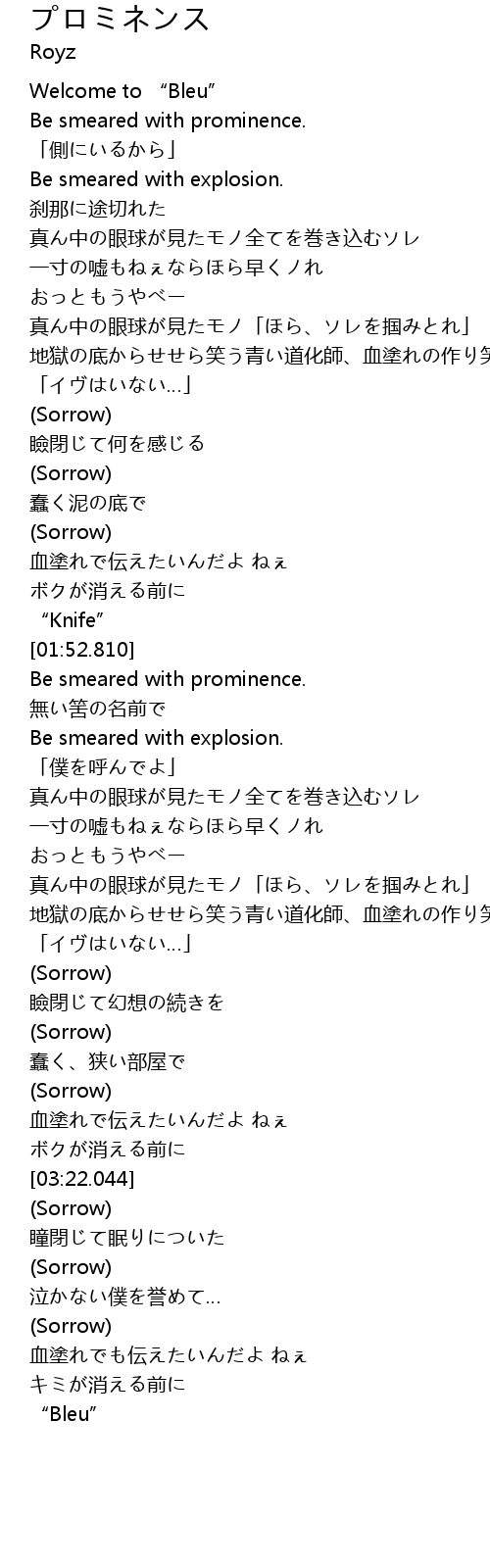 | [01:38.025] | 血塗れで伝えたいんだよ ねぇ |