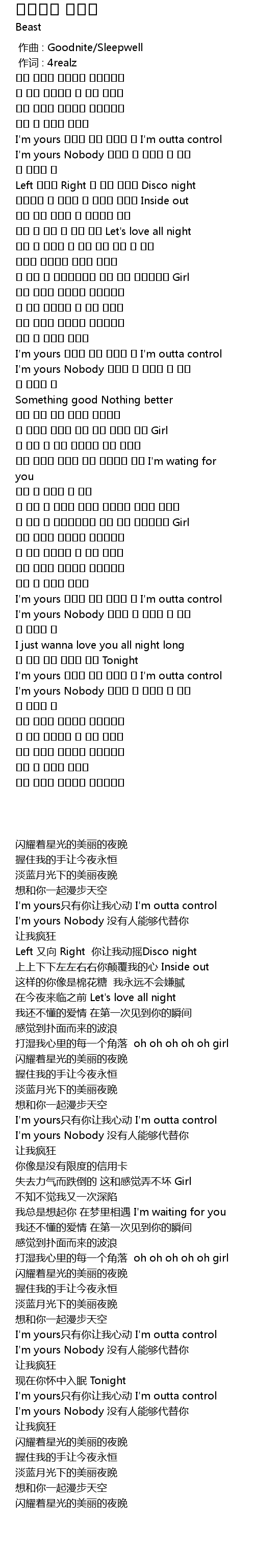 | [02:27.790] | I'm yours 너만이 나를 설레게 해 I'm outta control |