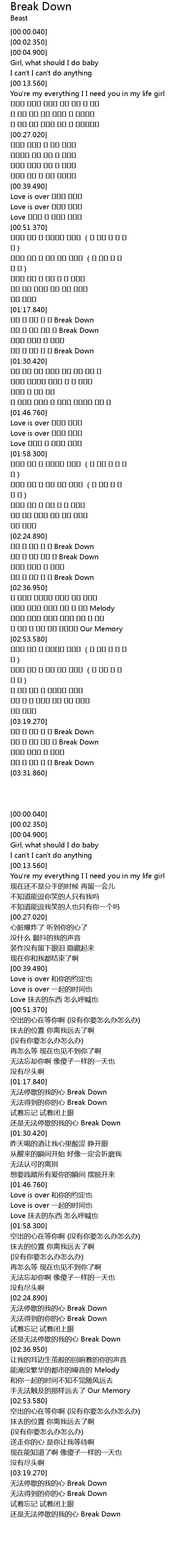 | [02:34.030] | 멈출 수 없는 내 맘 Break Down |