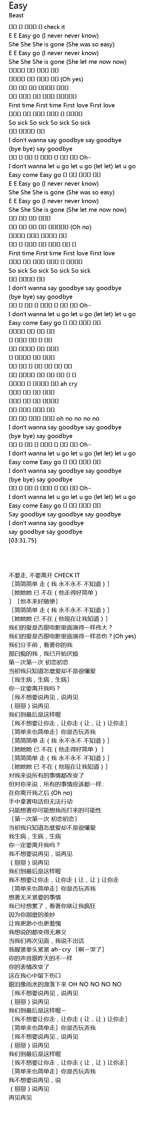 | [01:19.95] | E E Easy go (I never never know) |