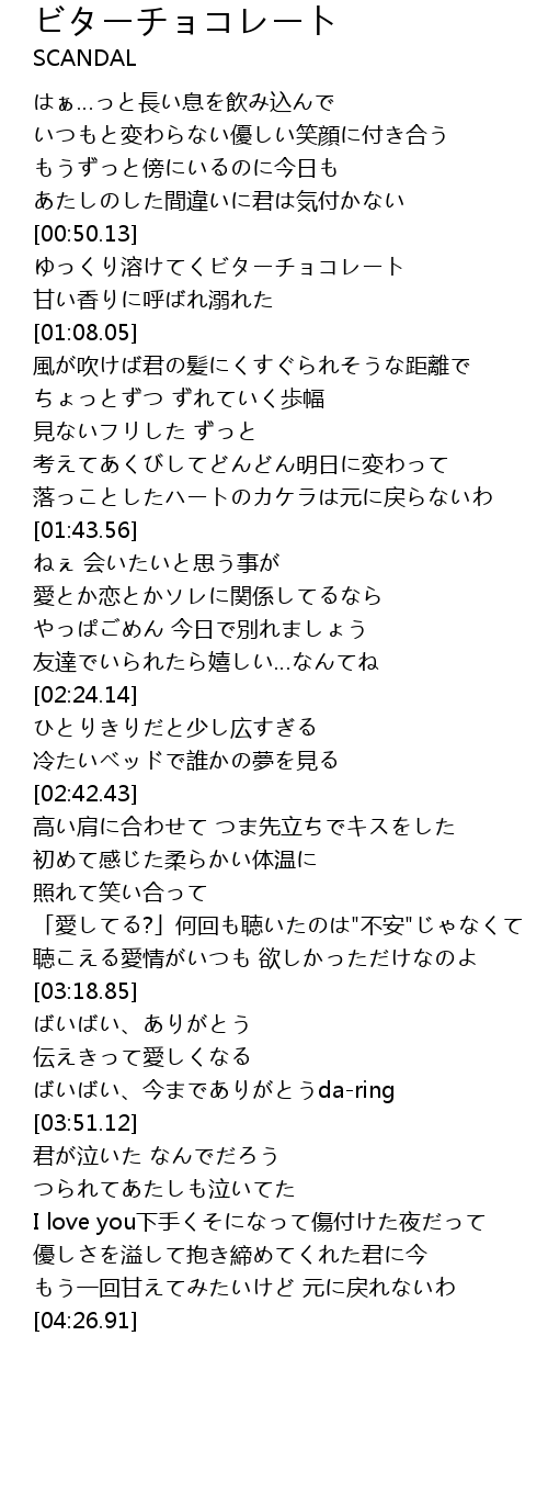 | [00:51.34] | ゆっくり溶けてくビターチョコレート |