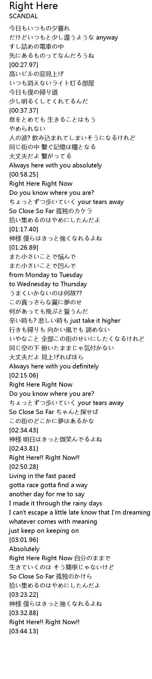 | [03:04.25] | Right Here Right Now 自分のままで |