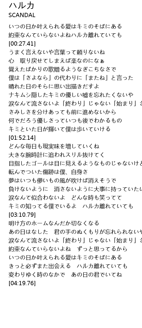 | [04:03.34] | きっと必ずまた出会える ハルカ離れていても |