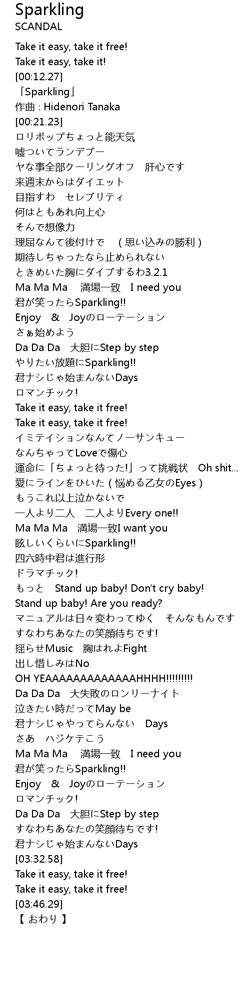 | [02:13.30] | 眩しいくらいにSparkling!! |