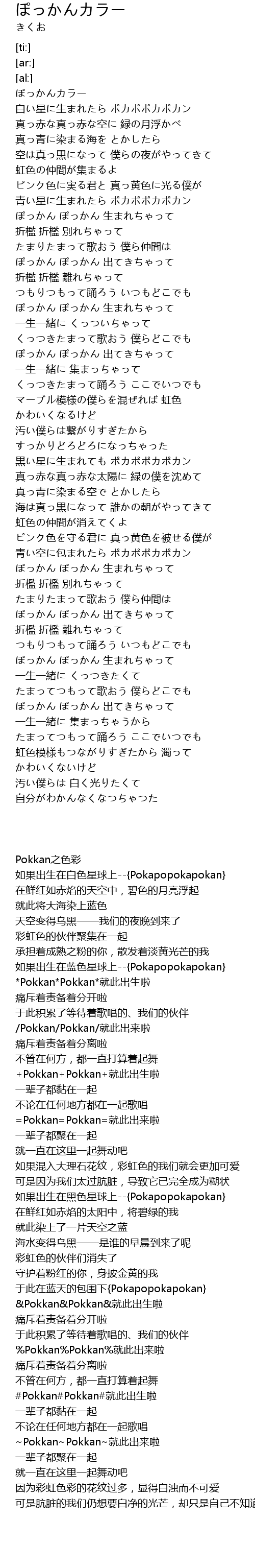| [00:00.00] | Pokkan之色彩 |