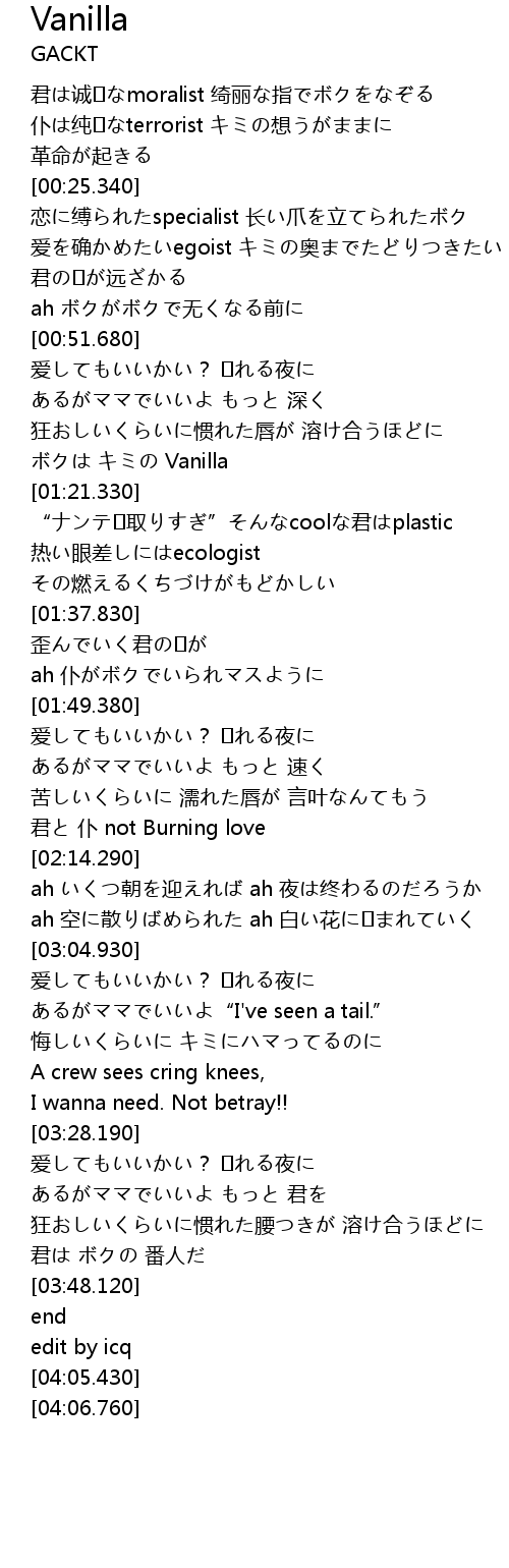 | [01:13.830] | ボクは キミの Vanilla |